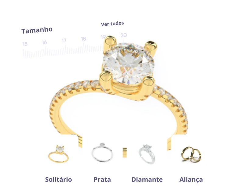 Deixe seus clientes experimentarem o brilho antes da compra: combine personalização avançada com a magia da Realidade Aumentada. É a solução perfeita para cativar clientes, impulsionar vendas e reduzir devoluções, com visualização em altíssima definição, virtual try-on em realidade aumentada e controle total de materiais, pedras e designs