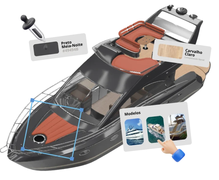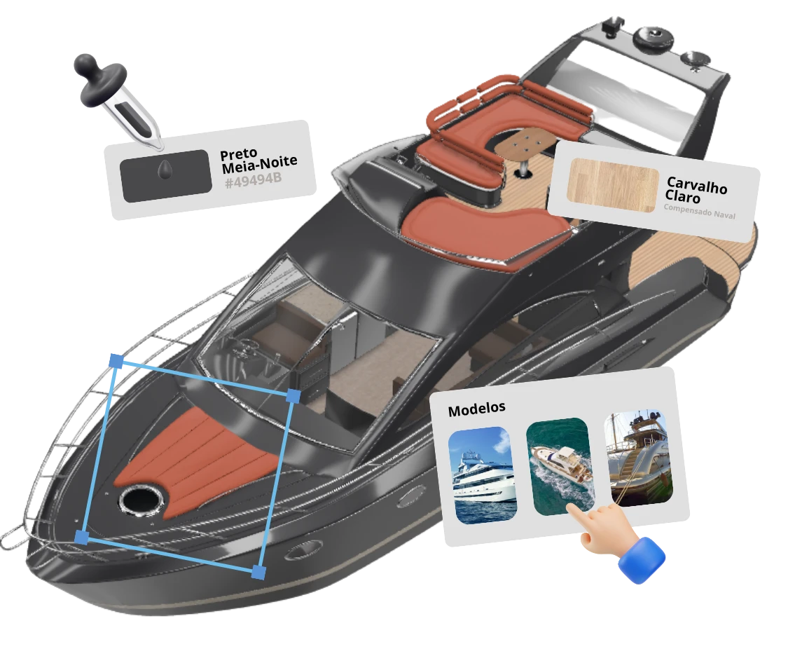 Transforme embarcações, interiores e layouts técnicos em experiências 3D personalizáveis, direto no navegador — sem instalar nada.